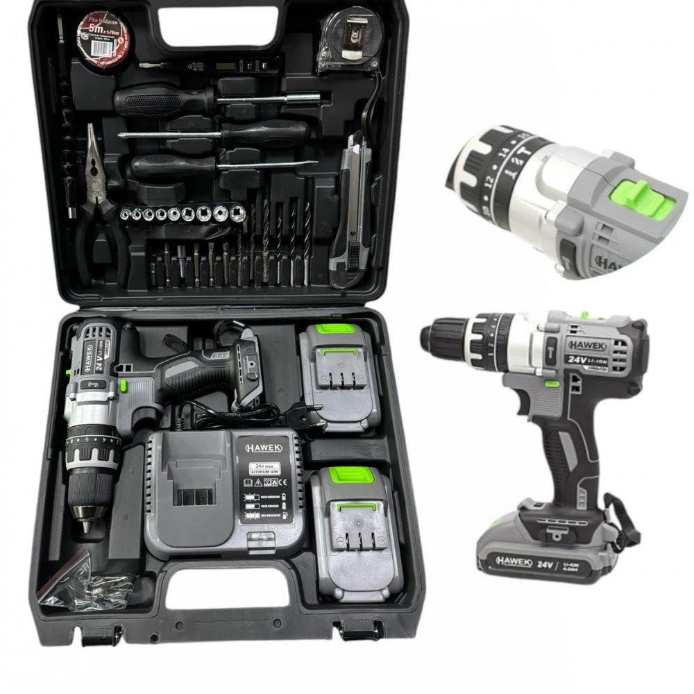 Акумулаторен ударен винтоверт 24V 4.0Ah с инструменти HAWEK