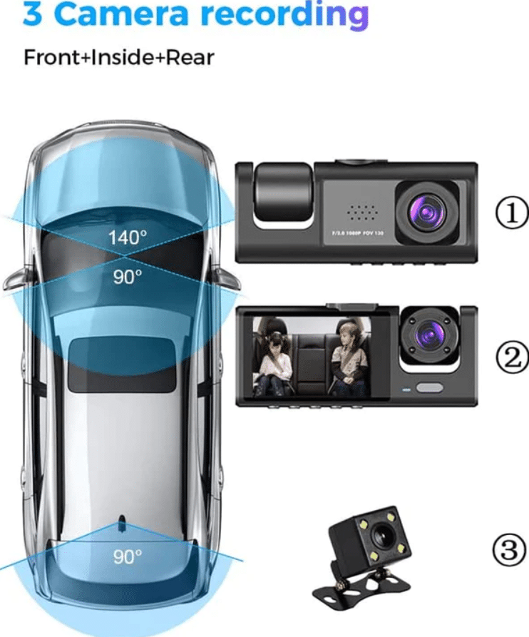 Видеорегистраторът предлага изключителен набор от възможности и функции на потребителя. Той е изключително полезен при натоварен трафик за проследяване на пътната обстановка. С помощта на 3 – каналната камера може да записвате навсякъде около вашия автомобил и вътре в колата ви.