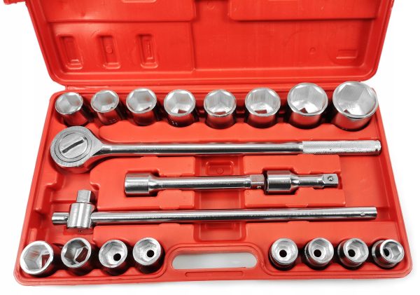 Професионален комплект торцови ключове 3/4″. Идеални са за големи камиони и селскостопански машини, изработени са от здрави материали, което се изразява в тяхната издръжливост. Необходими във всеки автосервиз, накрайниците с този размер ще помогнат при ремонт на камиони или селскостопански машини , Идеален за развиване или затягане на големи винтове Всички гнезда и адаптери са в практичен калъф Комплектът се състои от 21 части.