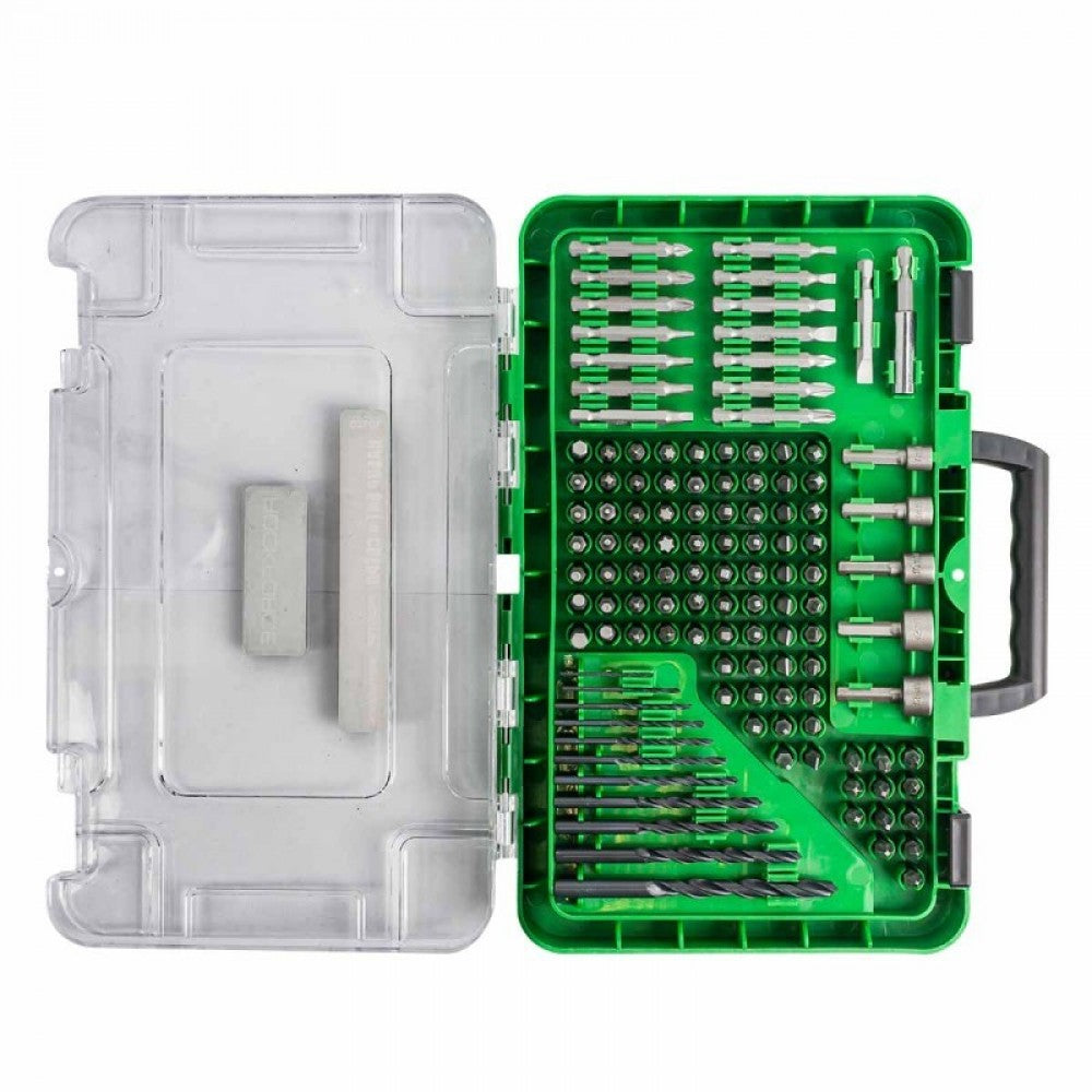 Практичен комплект накрайници, битове и свредла на RockForce - модел RF-10120 с магнитен държач , състоящ се от 120 части, в удобен пластмасов куфар за пренасяне.