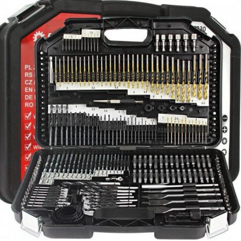 • 30 бр. свредла HSS за метал с покритие от черен оксид:  2 х 6 мм, 2 x 5,5 мм, 4 x 4 мм, 3 x 3,5 мм, 3 x 3,2 мм, 4 х 3 мм, 3 x 2,5 мм, 3 x 2 мм, 3 x 1,5 мм, 3 x 1 мм