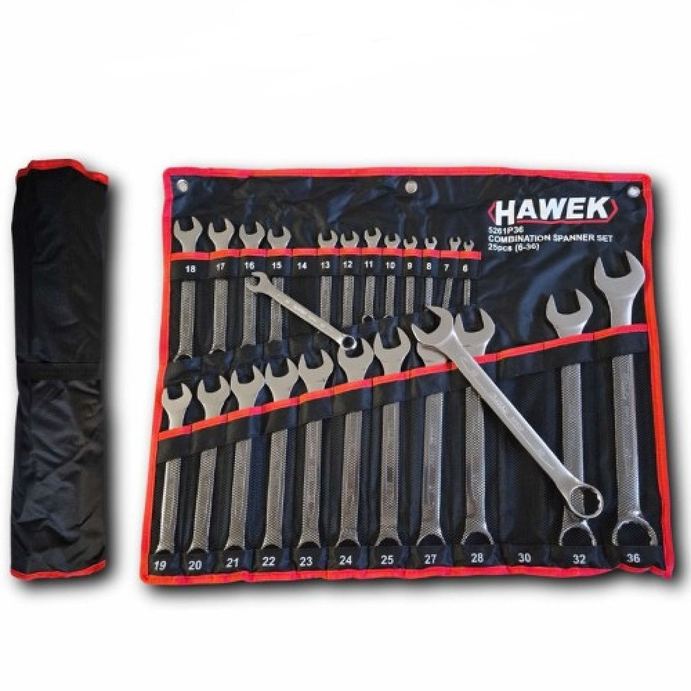 Hawek  представя комплект от 25 броя звездогаечни ключове 6 - 36 мм., изработени от висококачествена хром-ванадиева стоманена сплав, която придава изключителна здравина и надеждност по време на работа с тях.