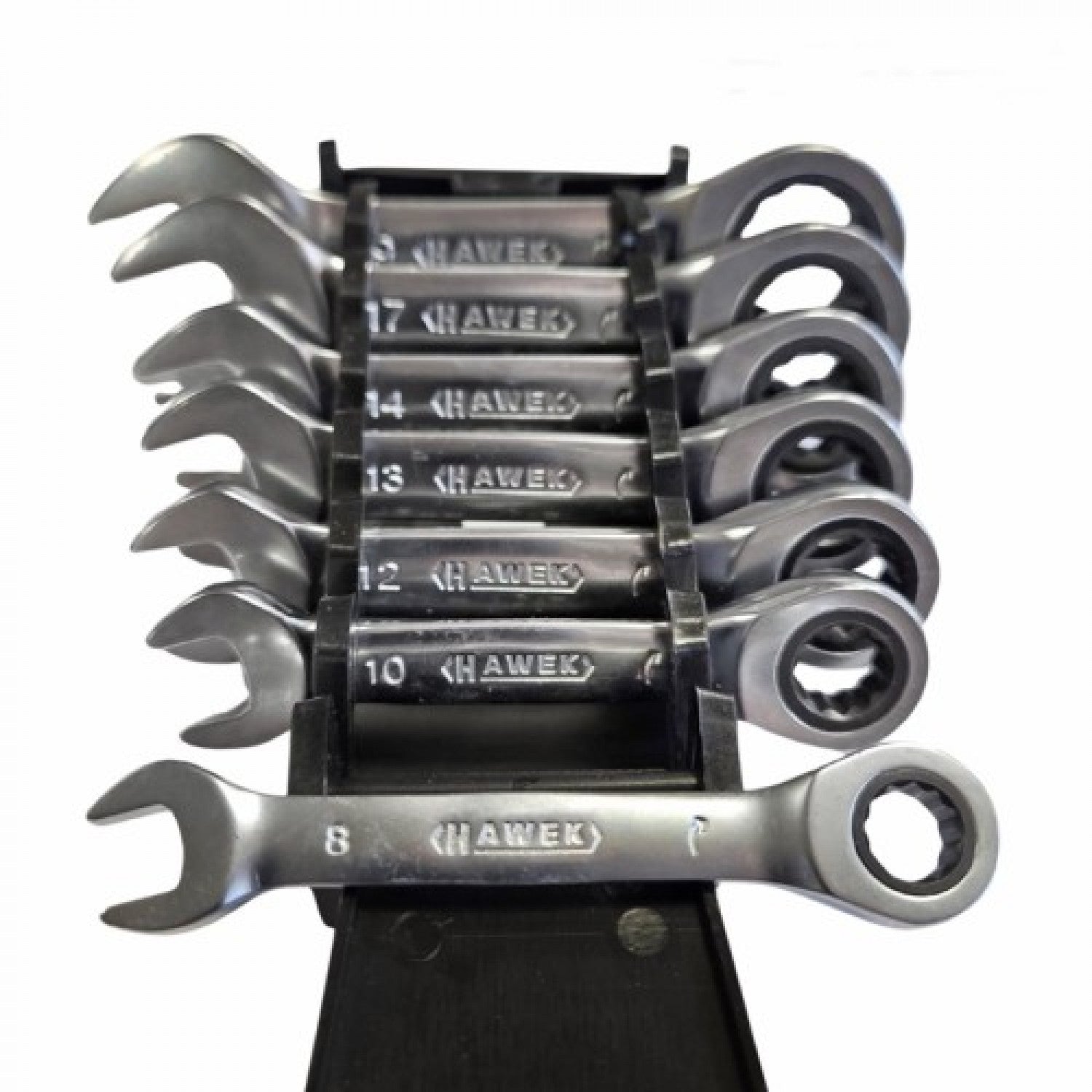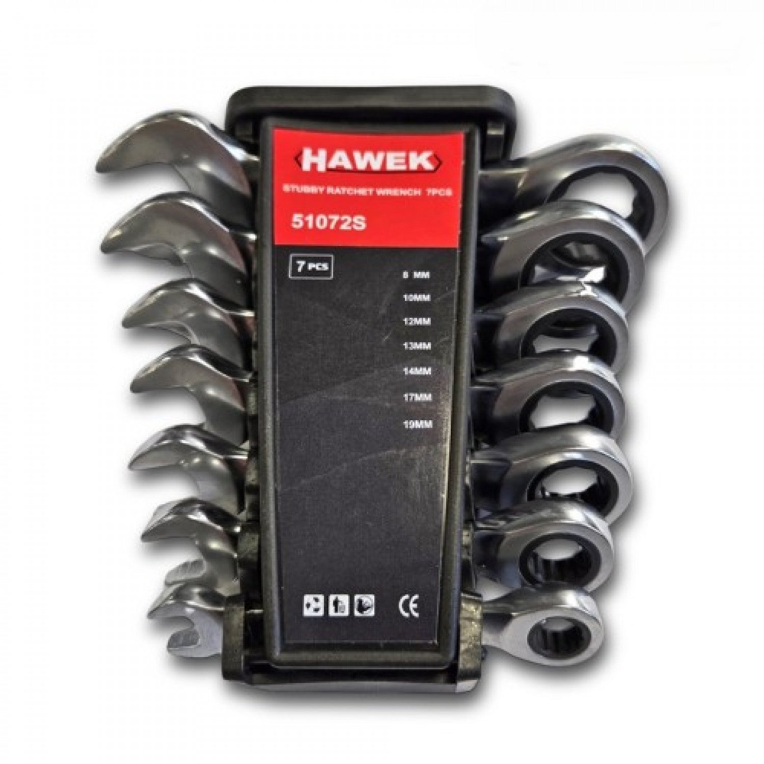Комплект къси звездогаечни тресчотни ключове 8 - 19 мм 7 части HAWEK