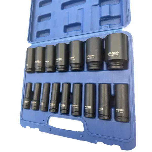 КОМПЛЕКТ УДАРНИ ВЛОЖКИ 16 ЧАСТИ 1/2 (10 – 36 ММ) HAWEK