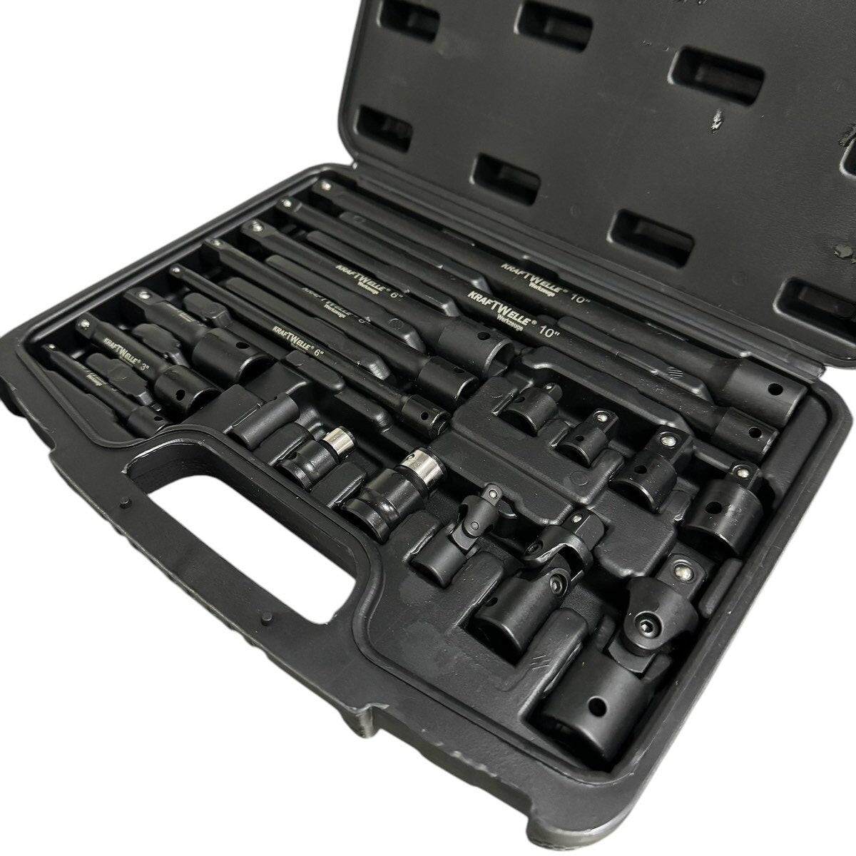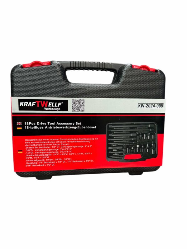 КОМПЛЕКТ УДАРНИ ПРЕХОДНИЦИ ( АДАПТЕРИ ) И УДЪЛЖЕНИЯ 1/4″, 3/8″ и 1/2″ 18 ЧАСТИ KFRAFTWELLE