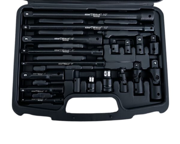 Комплект ударни преходници ( адаптери ) и удължения 1/4″, 3/8″ и 1/2″ 18 части KraftWelle