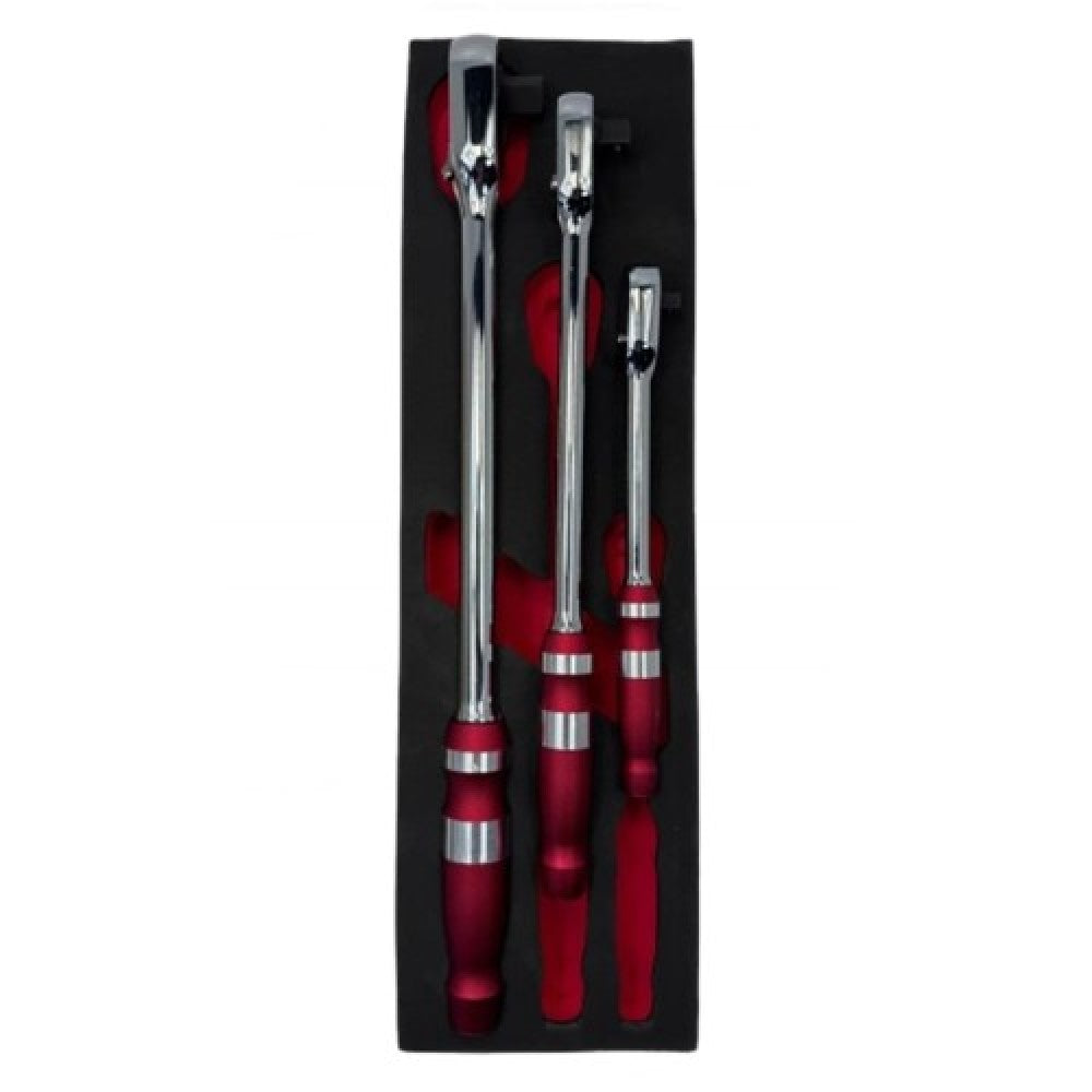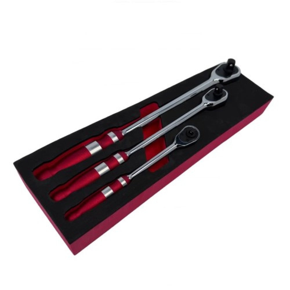 Комплект удължени, усилени тресчотки с плоска глава и функция за обръщане 3 части 1/4", 3/8" и 1/2" KraftWelle