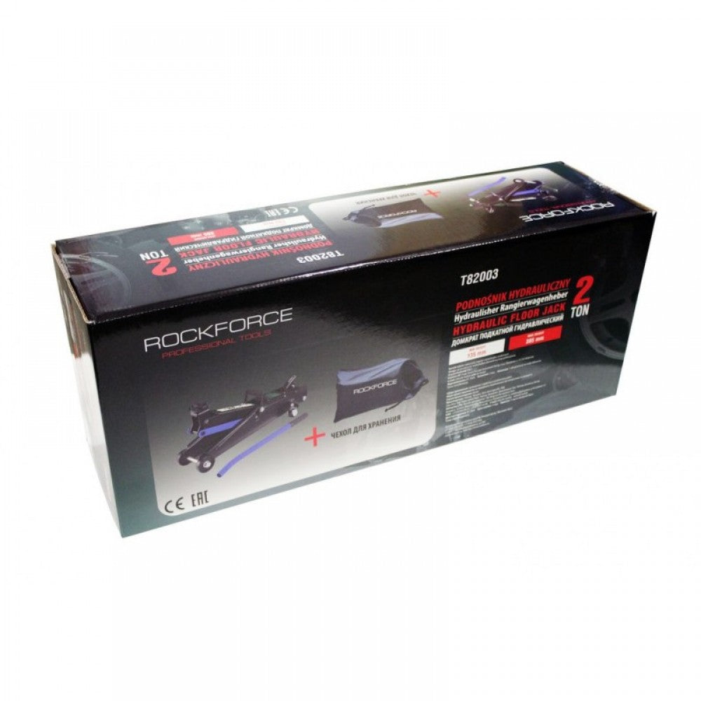 Висококачествен нисък профил RockForce автомобилен крик. Той има конструкция, основана на принципа на раменния крик с хидравлично задвижване. Характерна особеност на крика е малката му първоначална височина. Така че можете да се плъзга крика под всяка кола, особено полезна за ниски спортни автомобили. Незаменим в автосервизи.