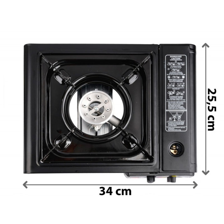 - Стабилен и лесен за употреба газов котлон с една горелка, създаден за къмпингуващите, който се пренася удобно и навсякъде в своя куфар за съхранение.