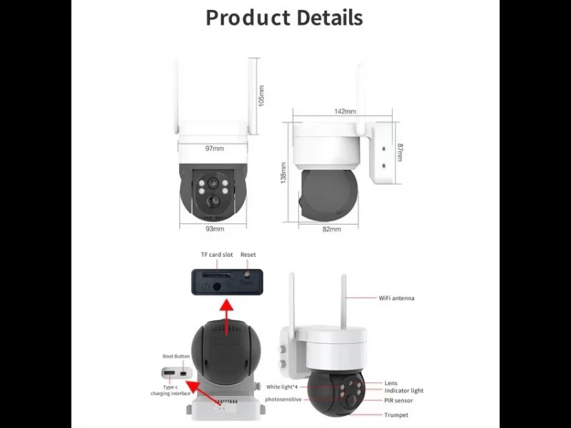 💾 Съхранение: microSD карта до 128GB + облачно съхранение – за дългосрочни записи.