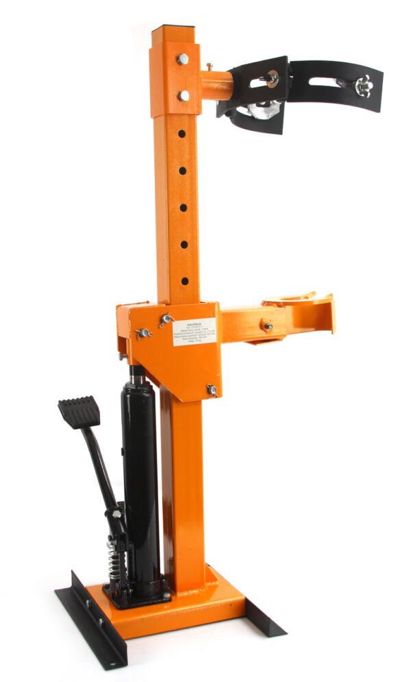 Това е инструмент, който ще ви бъде полезен за смяна на пружини и амортисьори. Цялата операция се основава на хидравличен цилиндър, управляван от два крачни лоста – единият от тях отговаря за повдигането на буталото на цилиндъра, а другият е за контролираното му спускане.