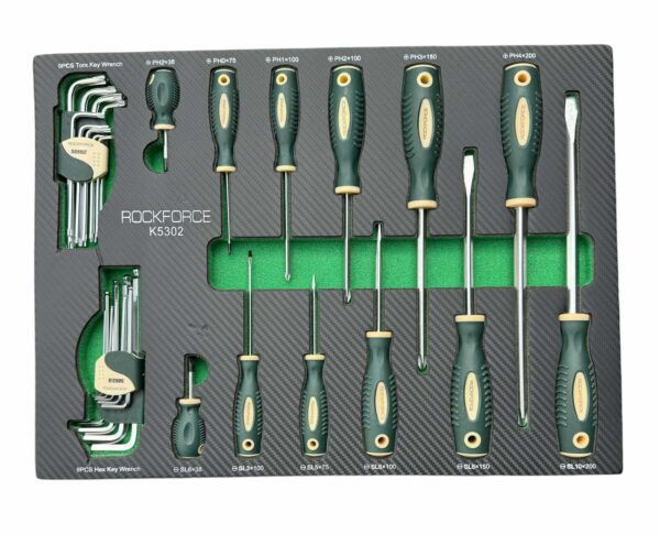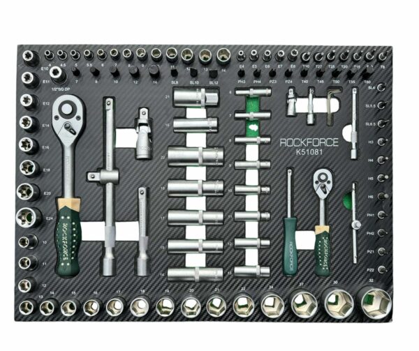 Масивна конструкция на шкафа , инструментите са наредени на масло устойчива EVA пяна . Комплектът включва звездогаечни ключове изработени от хром ванадиева стомана . Тресчотките са , изработени от хром-ванадиева стомана CrV6140. Тресчотките са оборудвани със системата QUICK RELASE и механизъм със 72 зъба.