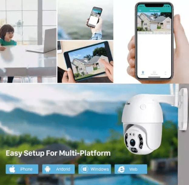 - Въртяща се камера по хоризонтал и вертикал през телефон или компютър;