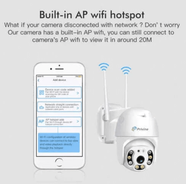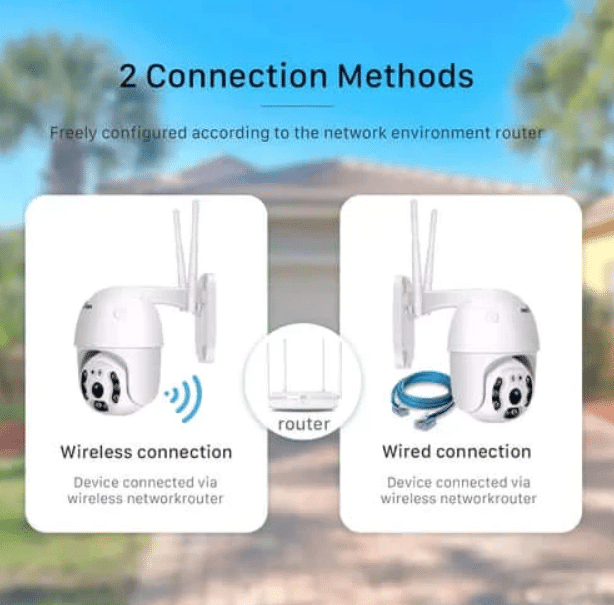 Вградени две 5-dBi антени, по-силна способност за получаване на wifi сигнали, камерата няма да е офлайн; можете също да използвате Ethernet кабелно свързване първо, просто и по-бързо. По-бърза и по-стабилна от 3-dBi антената на обща камера, а двойната линия е по-силна от единичната линия.