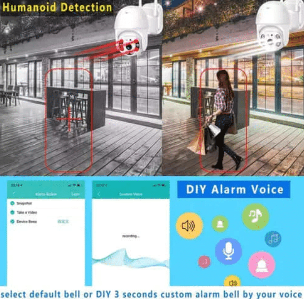 Много нови или усъвършенствани функции са внедрени в тази иновативна камера. Например с инфра червената IR LED светлина се осъществява автоматично и качествено цветно нощно наблюдение, а моторчето на камерата осигурява хоризонтално завъртане до 350 градуса и вертикално въртене 110 градуса. Така камерата може да заснеме всеки движещ се обект в този обсег. Налична е и функцията за движение (motion detect), когато движещ се обект премине в обсега на камерата, той тя автоматично ще изпрати съобщение за аларма към мобилното приложение и ще направи актуална снимка директно. Двупосочна гласова връзка дава възможност и да сплашите някой неканен гост, който сигурно ще се стресне от глас идващ от не известна посока. Преди да пристъпим към закрепването на камерата на стената е добре да се направят всички настройки между камерата и мобилния телефон, таблета, лаптопа. или компютъра. Монтажът на тази прецизна външна камера е надежден и е изключително улеснен и осигурен от производителя. Не се изискват никакви допълнителни познания и елементи.