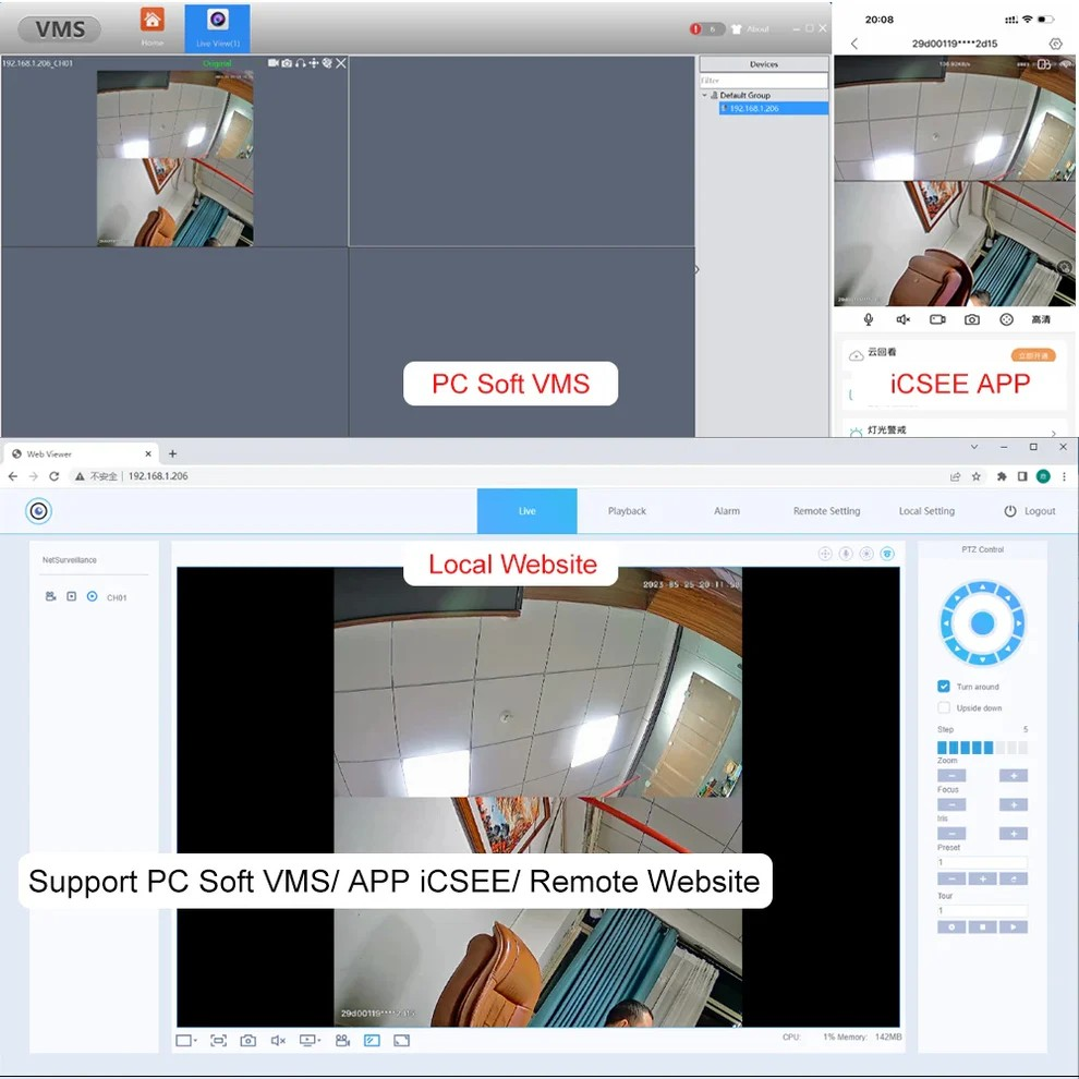 Изключителна визуализация: Комбинира PTZ камера и камера за панорамно наблюдение, осигурявайки детайлен двоен изглед в приложението.