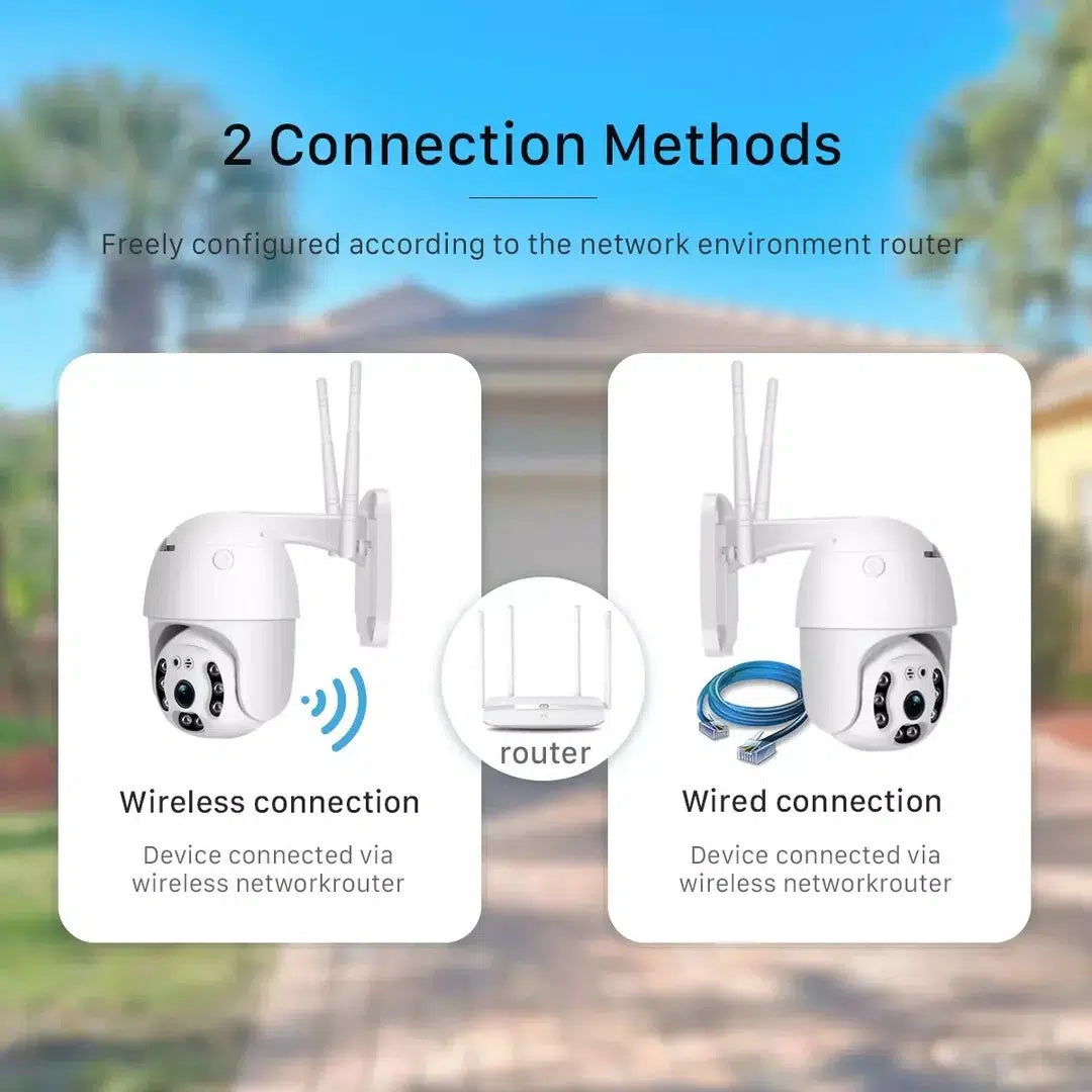 Вградени две 5-dBi антени, по-силна способност за получаване на wifi сигнали, камерата няма да е офлайн; можете също да използвате Ethernet кабелно свързване първо, просто и по-бързо. По-бърза и по-стабилна от 3-dBi антената на обща камера, а двойната линия е по-силна от единичната линия.